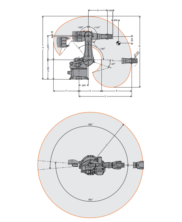 的基米-雷克南500年R2830年太(机器工具)机器人变体是用于重型铣削应用程序;它可以用作机床集成铣刀轴。它有一个500年公斤有效载荷和2826年毫米范围。